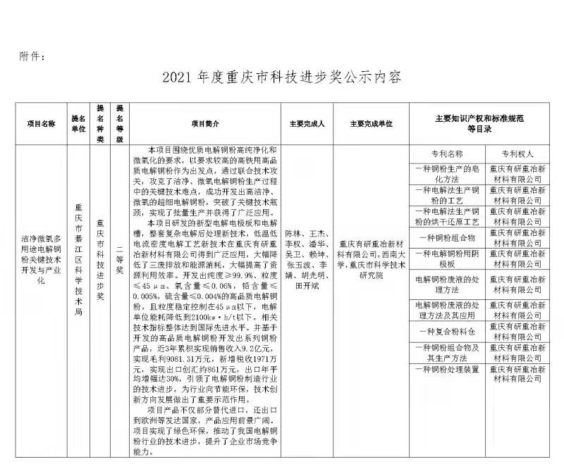 关于教师王杰、李婧参与申报2021年度重庆市科学技术奖励的公示