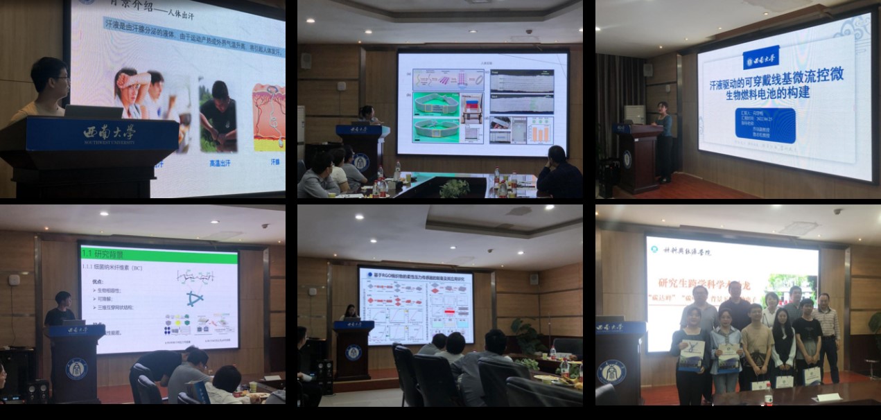 本次沙龙活动在“双碳”背景下集中介绍并讨论目前织物电子领域的最新进展。肖刚、陈方春、熊静、向学梅、安剑五位同学在本次学术沙龙活动中作了分享汇报。肖刚同学在“双碳”的背景下,瞄准织物科技、时尚、绿色的新发展定位,从材料的角度来叙述织物的多功能化和智能化,开发吸湿导汗智能纤维/织物。陈方春同学就“基于导电棉织物开发柔性传感器及其应用研究”作内容分享。熊静同学在“双碳”的背景下构建了一种成本低、无能耗、绿色环保的汗液葡萄糖比色分析平台。向学梅同学认为生物燃料电池可作为清洁和可持续能源的一种,可进行生物发电,开发了一种汗液驱动的可穿戴线基微流控生物燃料电池。安剑同学以“芳纶纳米纤维/细菌纤维素基柔性压力传感器的构筑”为题作了内容分享。