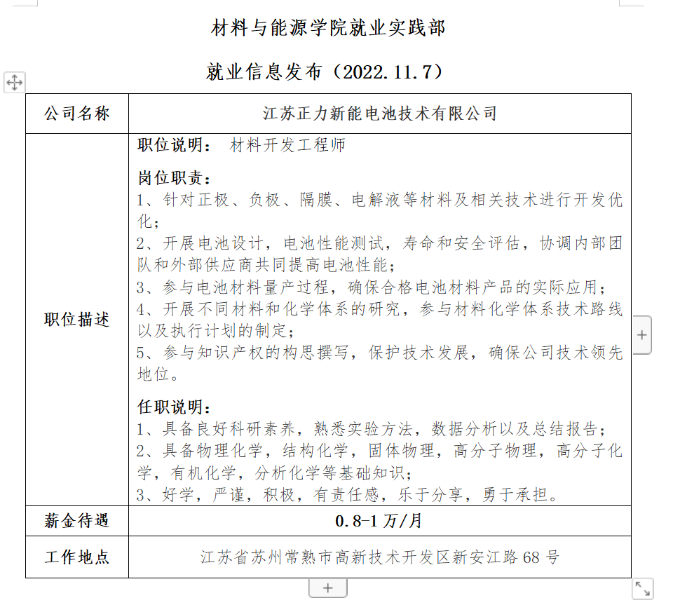 就业信息发布—江苏正力新能电池技术有限公司
