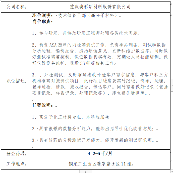 就业信息发2021.5.20—重庆澳彩新材料股份有限公司(1)
