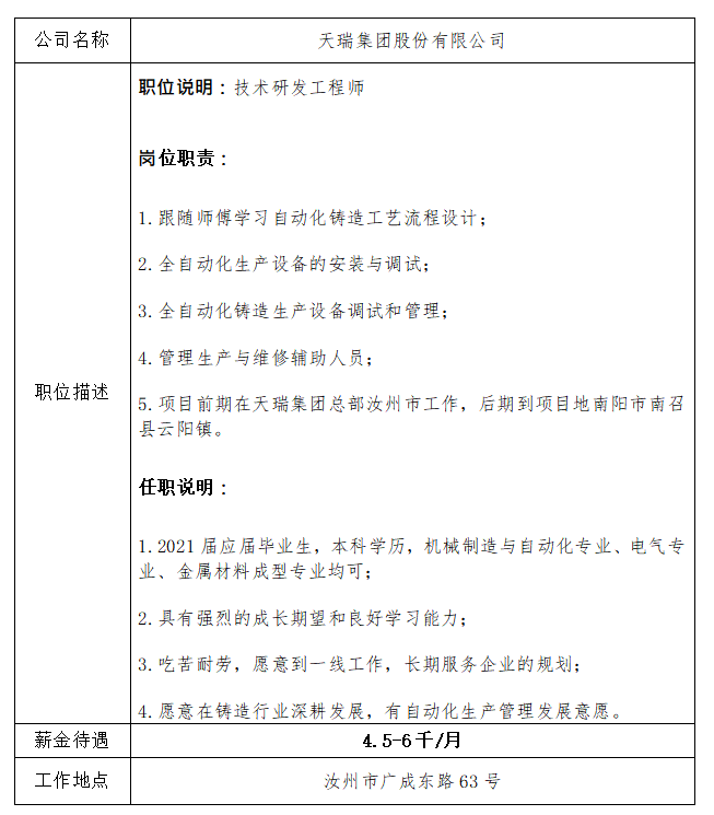 就业信息发布2021.5.9-天瑞集团股份有限公司