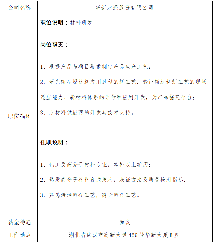 就业信息发布2021.04.18-华新水泥股份有限公司