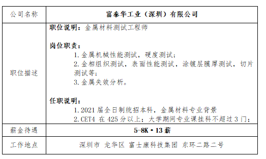 就业信息发布2021.04.11-富泰华工业(深圳)有限公司