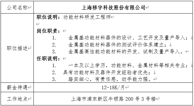 就业信息发布2021.03.07-上海移宇科技股份有限公司