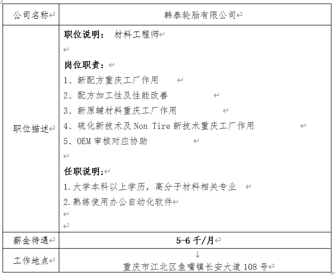 就业信息发布2021.1.18—(韩泰轮胎有限公司)