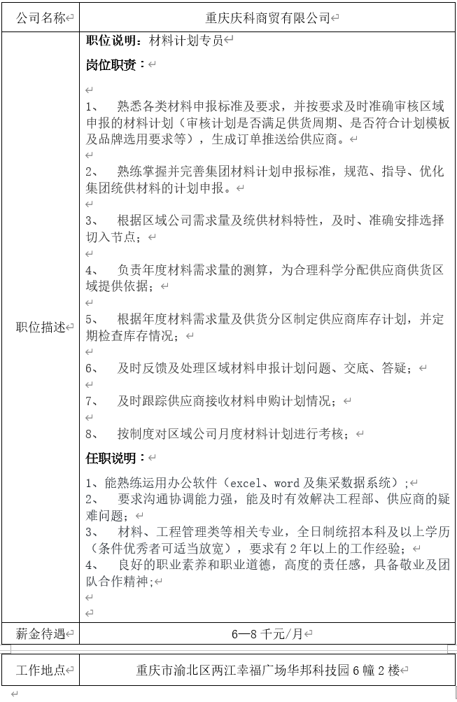 就业信息发布2021.3.5--重庆庆科商贸有限公司