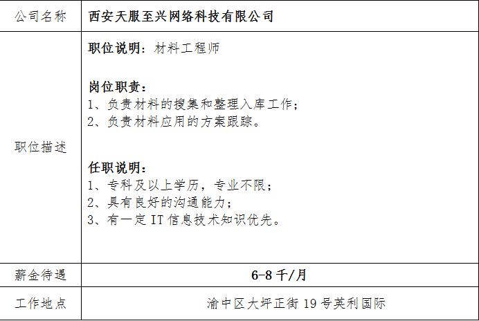材料与能源学院就业实践部 就业信息发布(11月30日)