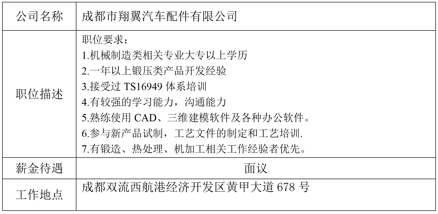 就业创业中心20190514发布-成都市翔翼汽车配件有限公司