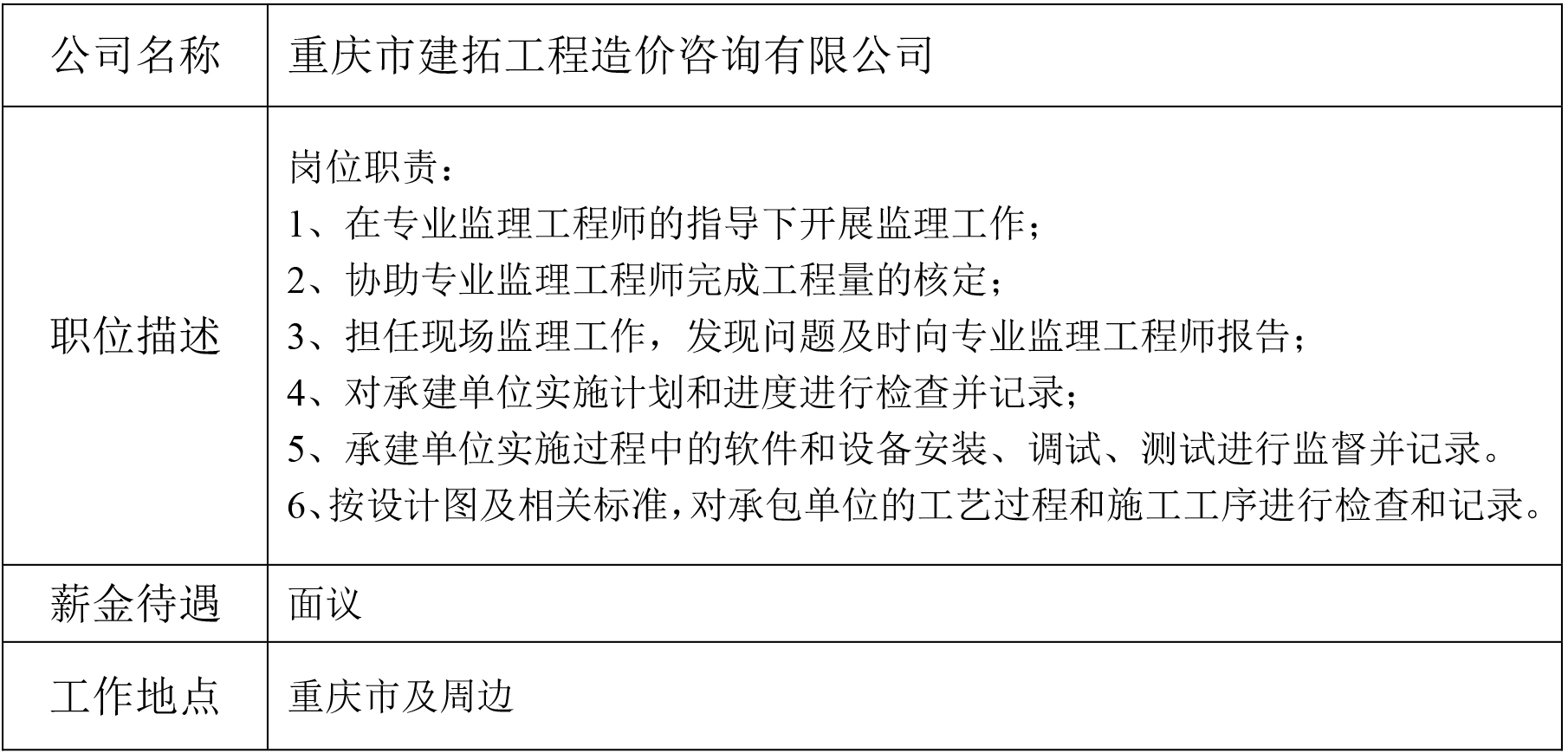 就业创业中心 20190429发布- 重庆市建拓工程造价咨询有限公司