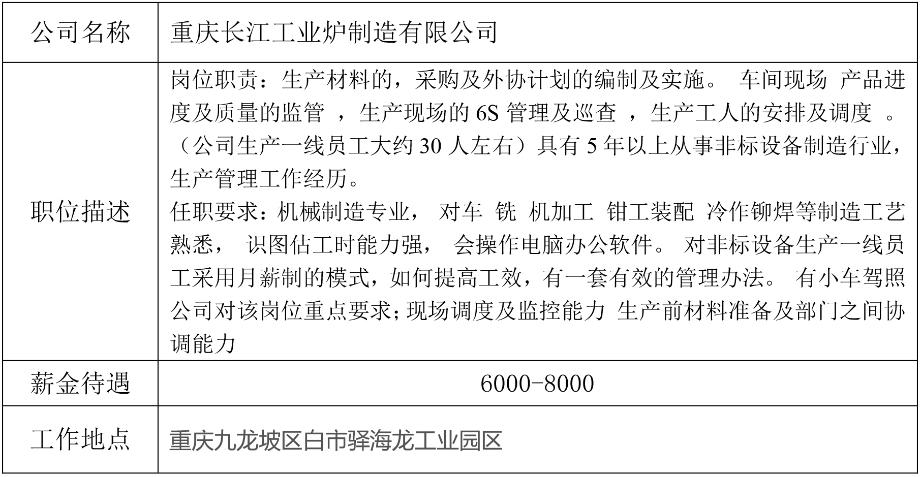 就业创业中心20190507发布-重庆长江工业炉制造有限公司)