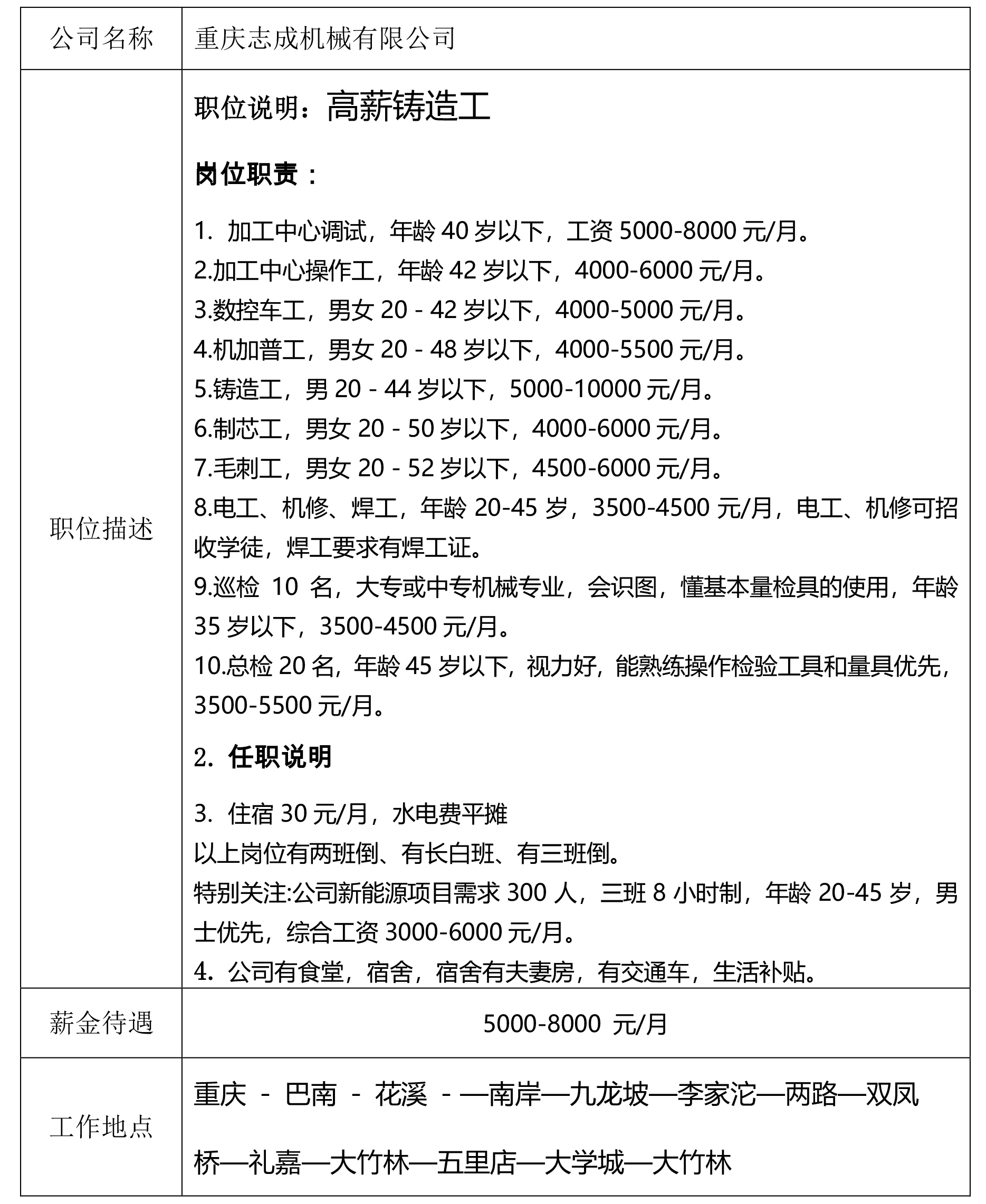 就业创业中心20181026发布-重庆志成机械有限公司