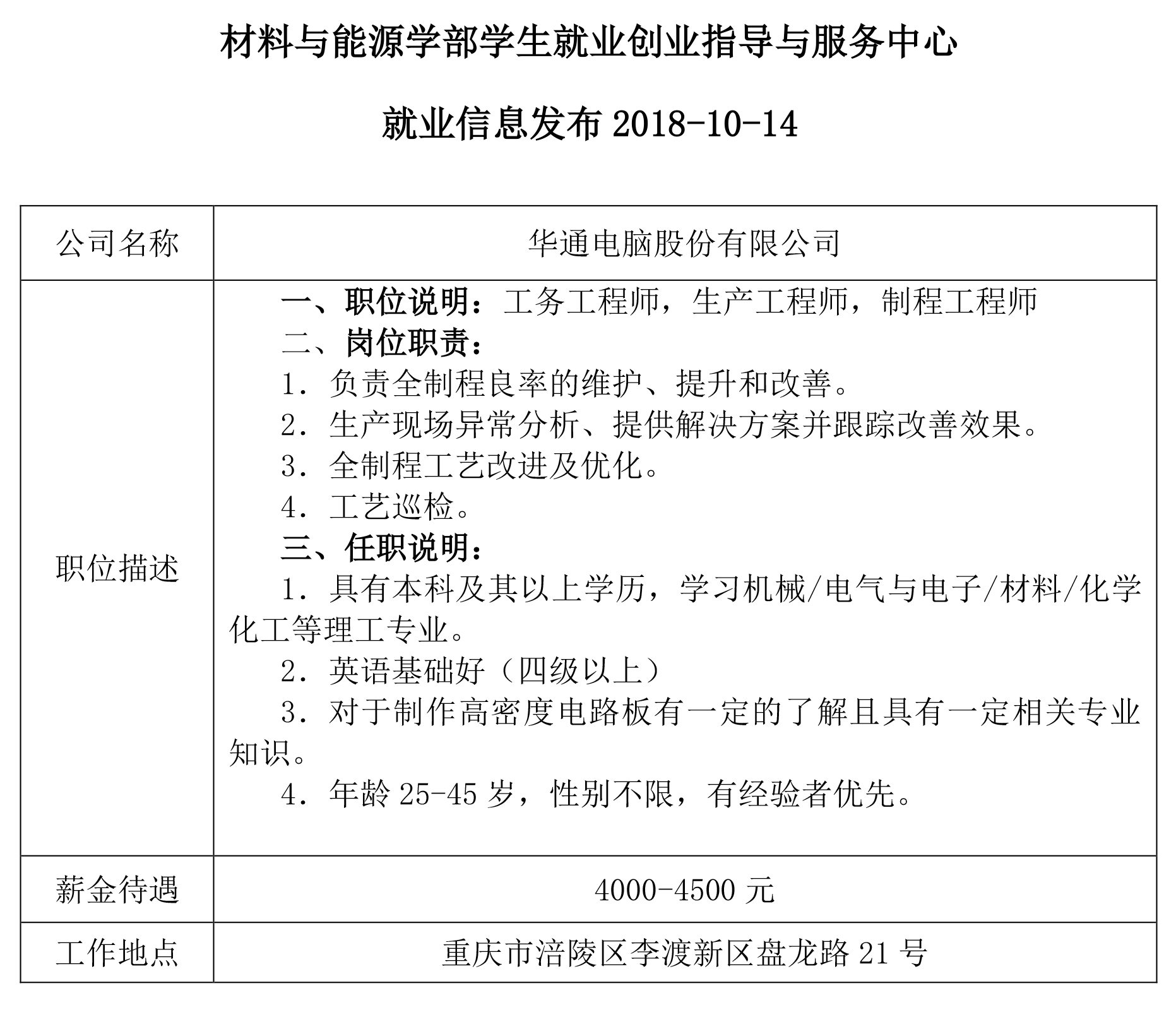 就业创业中心20181014发布-华通电脑股份有限公司