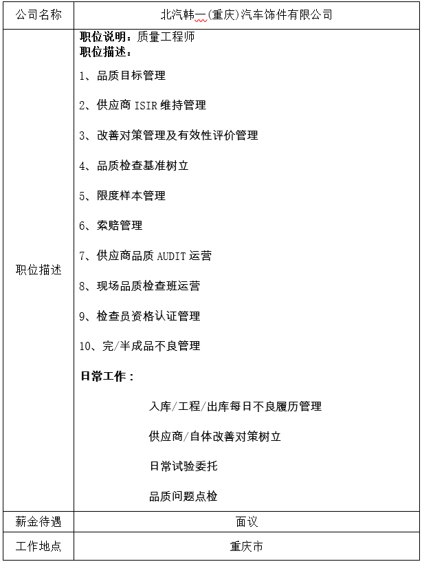 就业创业中心20180516发布-北汽韩一(重庆)汽车饰件有限公司