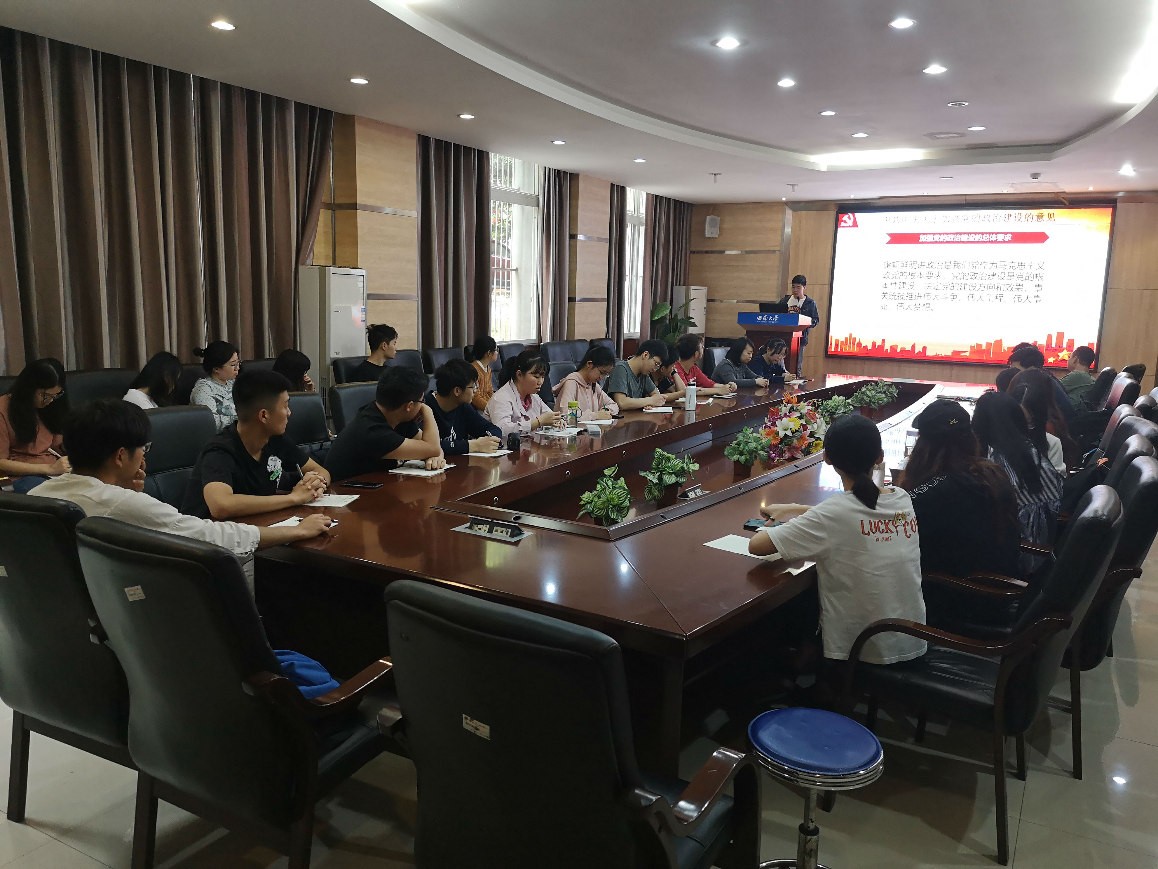 4月12日14:30分,本科生2016级党支部4月组织生活会在21教105室召开。支部全体成员参与学习,会议由2016级入党积极分子李静川、杨静芳两位同志共同主持。