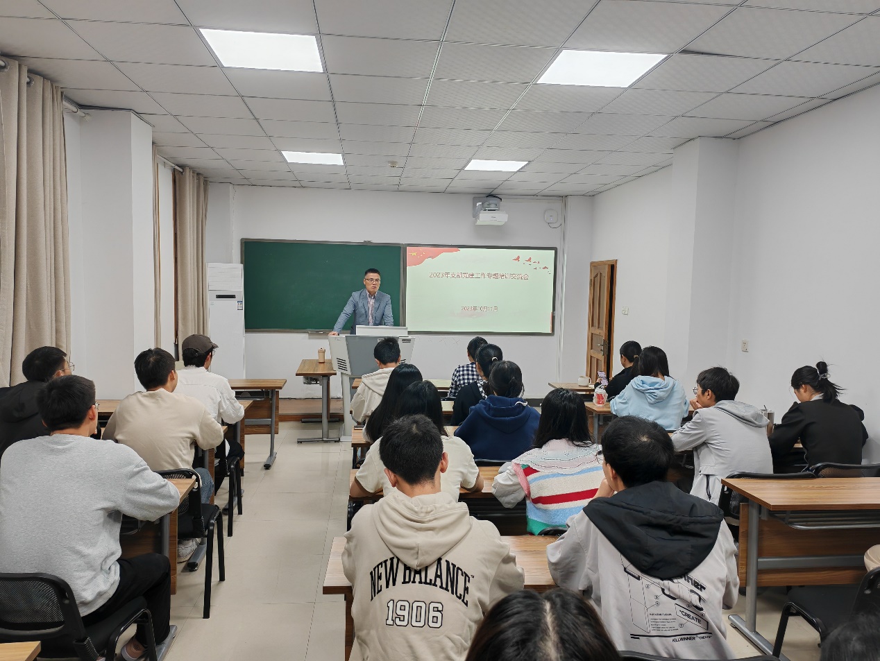 为进一步夯实基层党建工作基础,推动学生党支部工作和组织管理合理化、规范化,帮助新任学生支委尽快进入角色,提升业务水平,学院党委于10月11日上午9点在22教105教室开展2023年支部党建工作专题培训交流会,学院党委书记梁武、副书记李英、专职组织员居媛悦及各学生支部书记、支委参会,培训会由梁武主持。