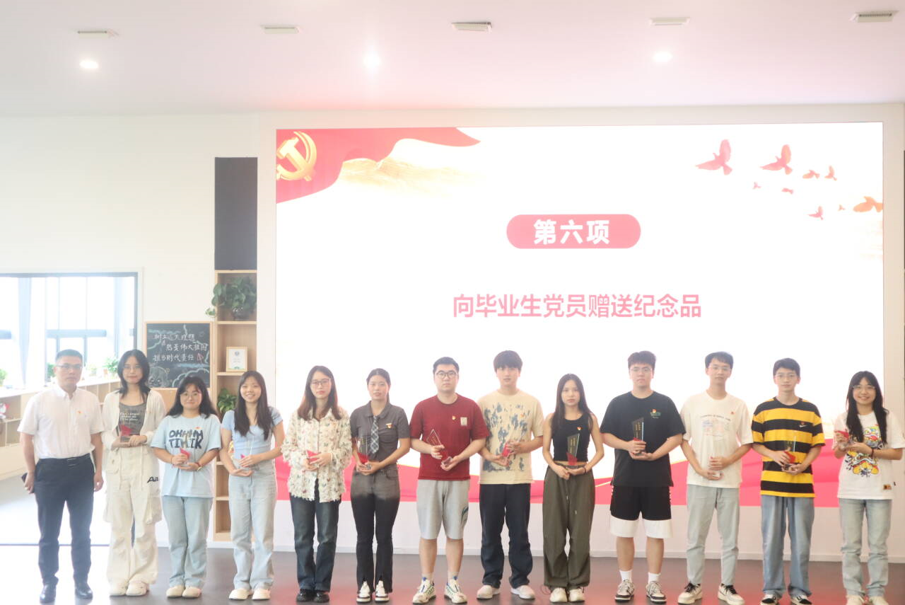 为了表达对毕业生党员的诚挚祝福,学院党委还提前为毕业生党员精心准备了专属制定的纪念品——刻有每位毕业生党员名字和祝福语“乘风破浪 行稳致远”的红色水晶奖杯。在“没有共产党就没有新中国”的欢快音乐中,梁武将沉甸甸的纪念品送到每位毕业生党员手中。前路漫漫亦灿灿 殷殷寄语向未来,愿全体毕业生党员带着学院党委的嘱托和期望,在实现中华民族伟大复兴的时代洪流中不惧风雨、勇挑重担,乘风破浪,行稳致远,让青春在中国式现代化实践中绽放绚丽之花。