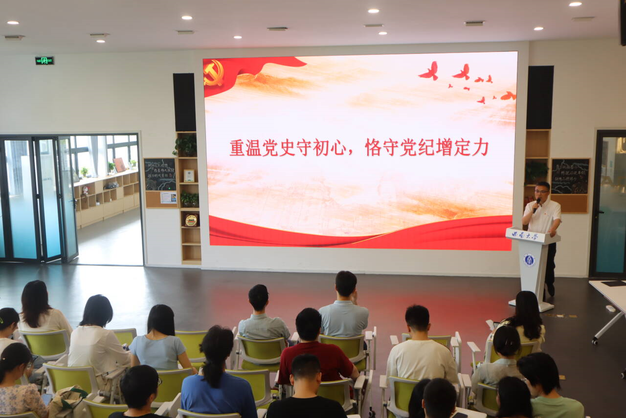 梁武以“重温党史守初心,恪守党纪增定力”为主题,给全体毕业生党员讲授在校期间的最后一堂纪律党课,阐释了开展党纪学习教育是全党加强纪律建设的重要举措,强调了党纪学习教育是每个党员的终身课题,并以90后干部被调查审查的反面案例教育引导毕业生党员要引以为戒,警钟长鸣,在今后的工作和生活中时刻保持清醒的头脑,坚定信仰和信念,不断提高自己的党性修养和道德水平,确保在人生的道路上走得正、行得稳。