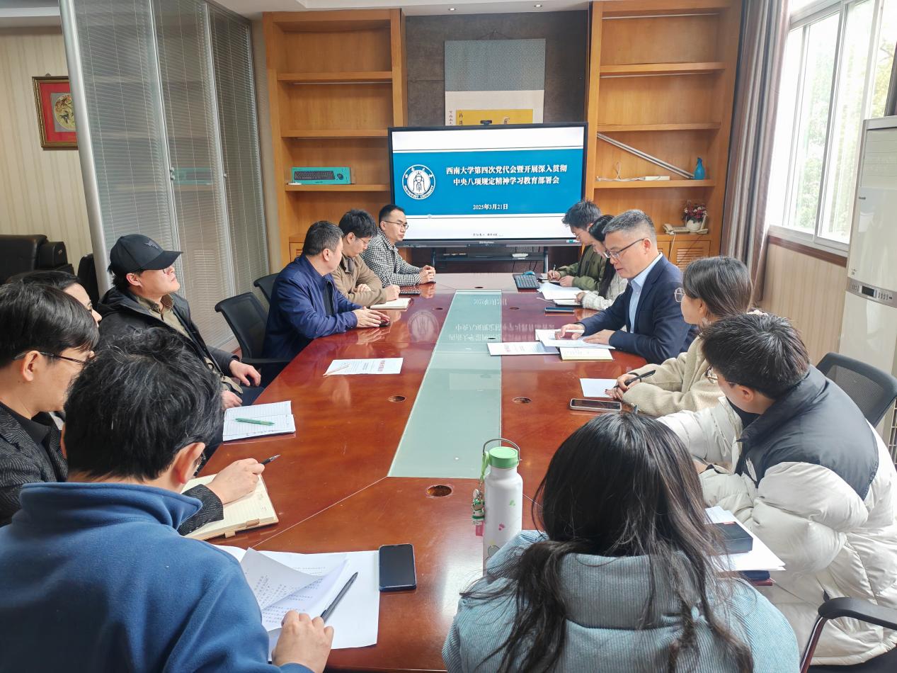 会上传达学习了《中共中央办公厅关于在全党开展深入贯彻中央八项规定精神学习教育的通知》《中共best365英国在线体育官网大学委员会关于开展深入贯彻中央八项规定精神学习教育的实施方案》文件精神,围绕“为什么学、学什么、怎么学”三方面对学院深入贯彻中央八项规定精神学习教育进行了工作部署。