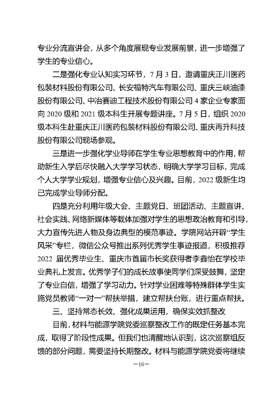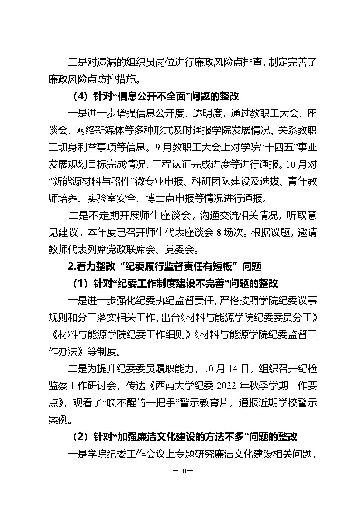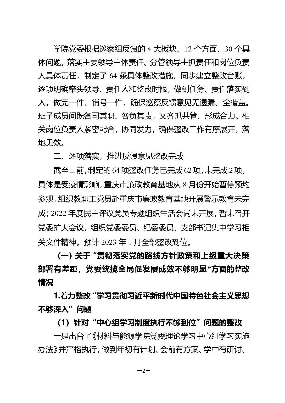中共best365英国在线体育官网材料与能源学院委员会关于落实学校党委第二巡察组巡察反馈意...