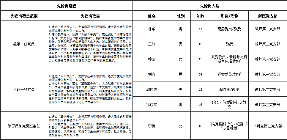 为深入贯彻落实《best365英国在线体育官网建设新时代“红岩先锋”变革型 组织实施方案》(西委〔2023〕135 号),根据《中共best365英国在线体育官网委员会关于实施“红岩先锋”基层党组织“五高”建设计划的通知》和《关于设立“红岩先锋岗”的通知》相关要求,经党支部推荐、学院党委会研究,现将学院“红岩党员先锋岗”人选公示如下: