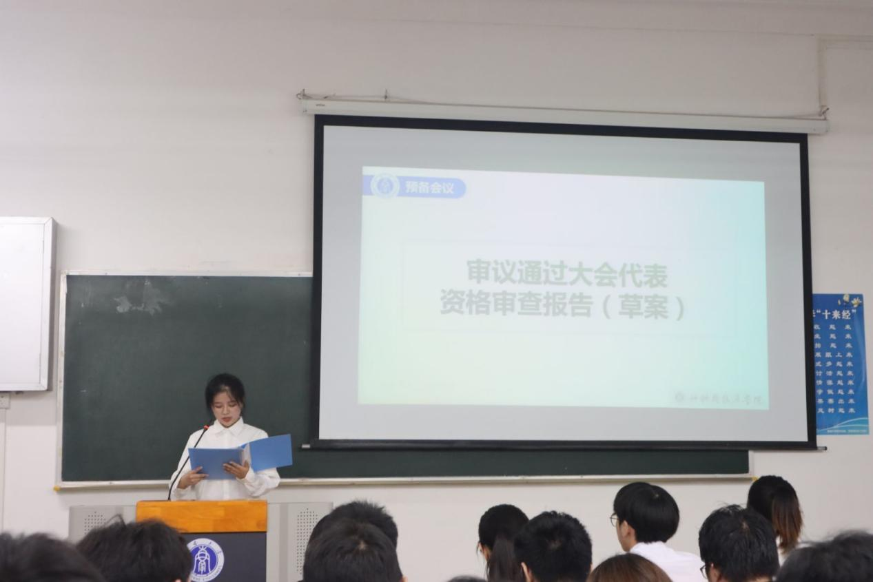 大会开始,进行宣读批复和筹备工作报告。在2021年,本院基本完成了学校部署安排的各项任务,取得一定成绩的同时也相应存在着一些问题。因此,我们应当继续抓实学生骨干培养,提高每位成员的团队意识,加强自我学习的能力,积极参与各项社会实践活动,完善自身的各个方面,将理论与实践相结合,做到各方面均衡发展。