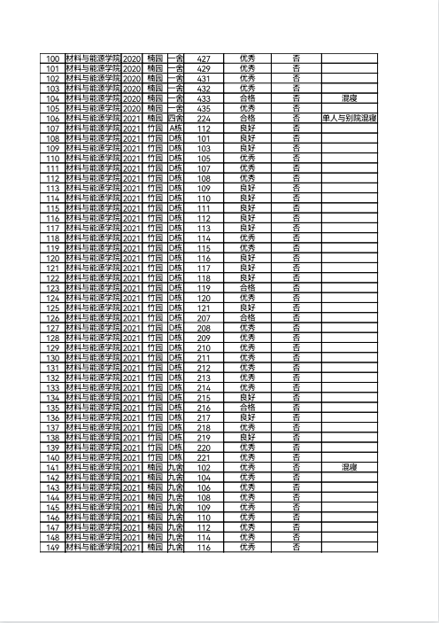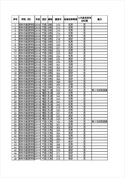 材料与能源学院第7周学生寝室安全卫生集中检查结果汇总表(10月24日)