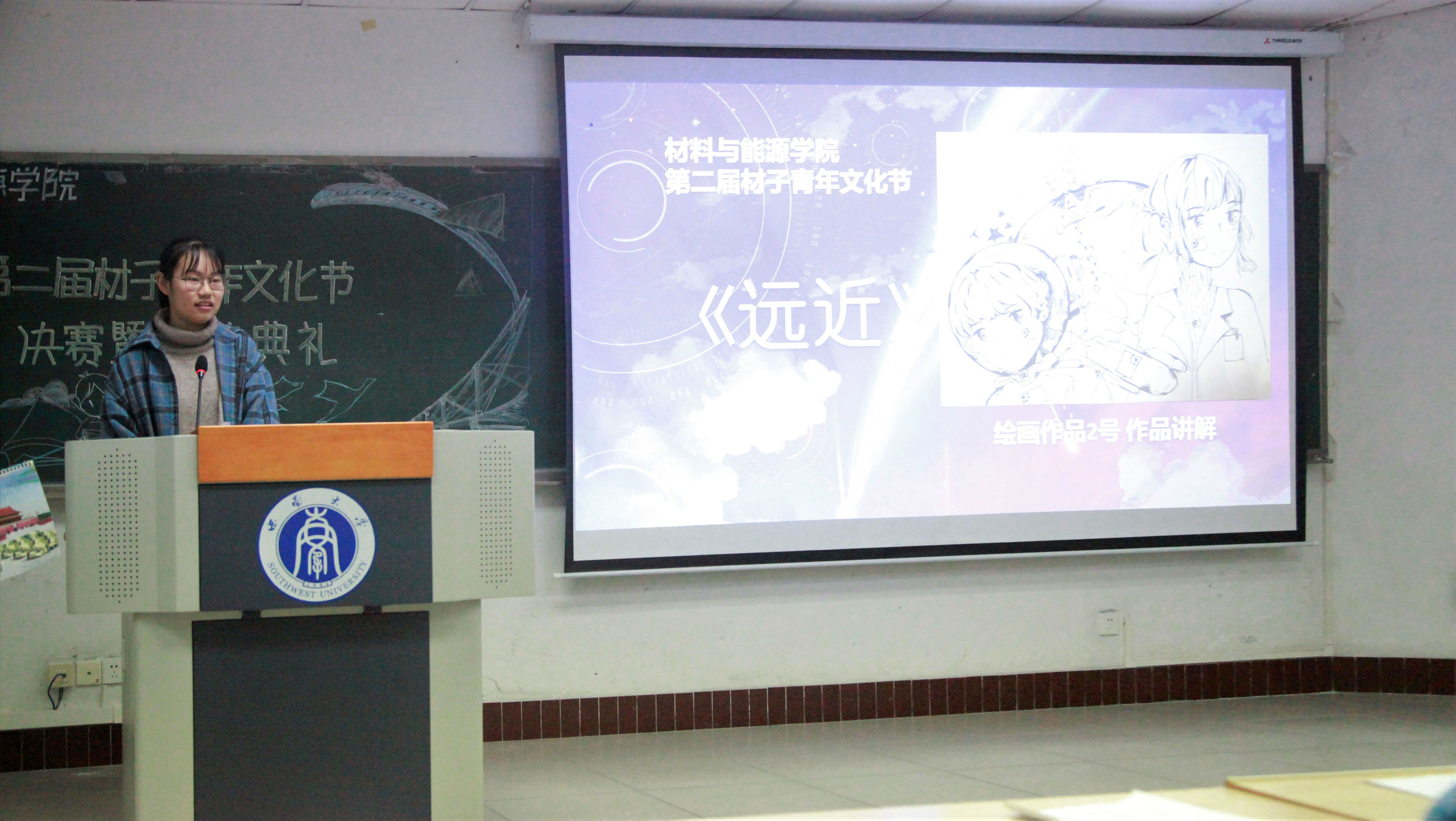 讲解结束后,评委和观众对四类作品进行了现场投票,由团委副书记张双艳,学生会副主席高静依次为获奖同学颁奖。