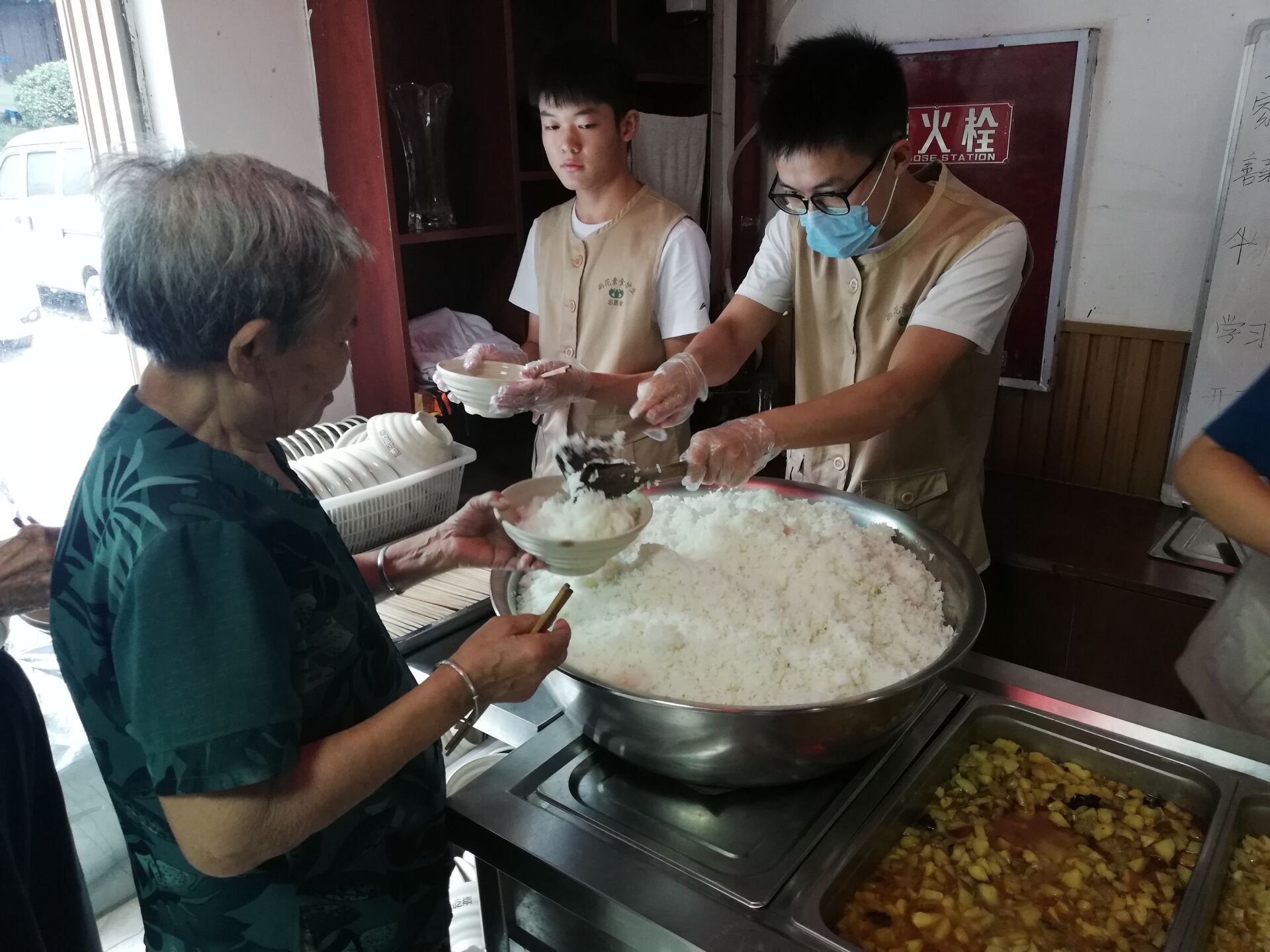 8月26日,小分队来到董家溪社区雨花斋互助餐厅进行义工活动。雨花斋餐厅是一家完全免费的素食公益餐厅,这里传统文化氛围浓厚。队员们在孔子像前三鞠躬;读《义工宣言》;诵读《大学》《中庸》;在专业人士的指导下完成了义工培训并进行义工活动。在充实又忙碌的劳动中和老人们度过了快乐的时光,体会到了义工活动的魅力。