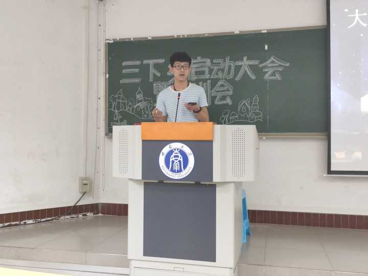“为帮助本学院的同学更好地了解三下乡的相关事宜以及要求,也通过相关的技能培训,提高小分队的宣传能力,特召开本次大会。” 在大会第一项,主持人在介绍活动背景和意义时如是说道。团委书记助理牟阳秋讲述了在大会上的班团参与性,“质量第二,安全第一”,她就安全问题向同学们进行了强调。随后,2018年暑期三下乡优秀小分队代表周宁静向大家分享展示了三下乡成果和参与其中的心得体会。