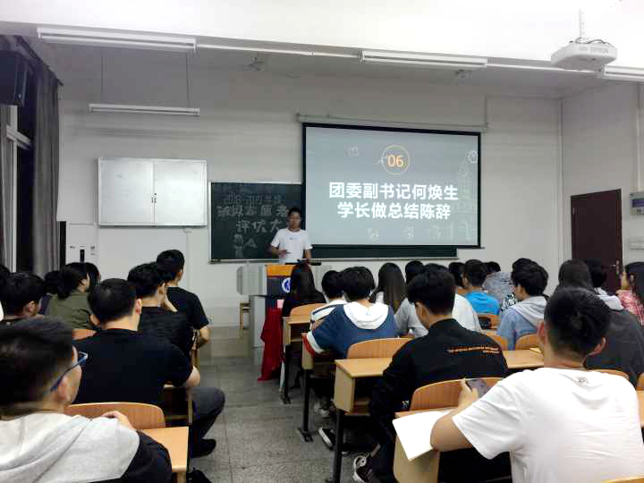 接下来,团委副书记何焕生做总结陈辞。他肯定了各班级志愿者活动开展的成果,同时也指出主讲人展示时的不足,并提出改进建议。最后他点明开展班级志愿者活动是为了让同学们树立正确的三观,学习榜样,学会奉献,促进班级的建设,他希望同学们能关注身边的人,帮助他人,将工作做扎实,让自己的班级发展得更好。