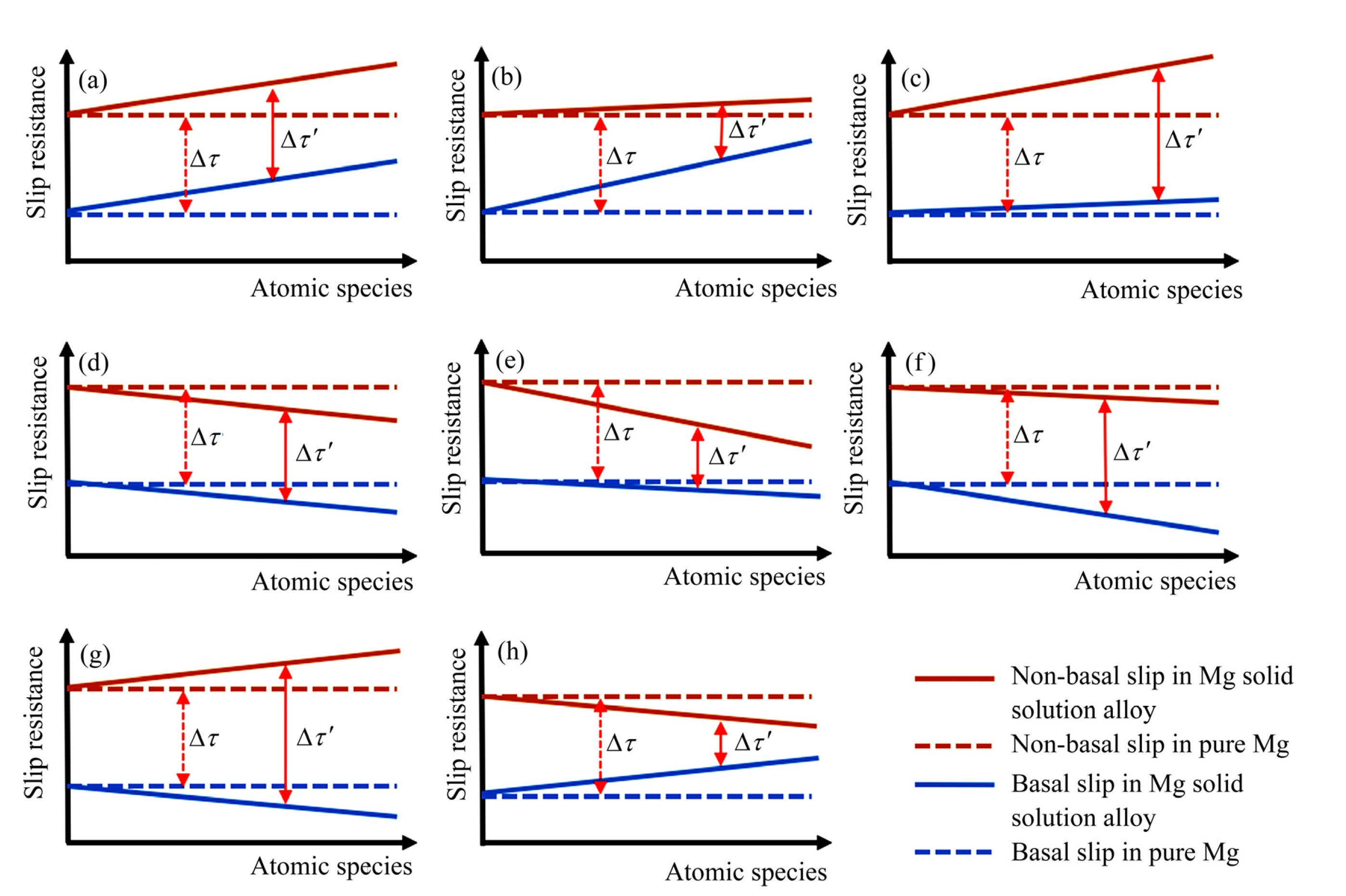 “镁合金固溶强化增塑合金设计理论是开发高强高韧镁合金的重要方法。研究发现某些特定原子固溶在镁中既能阻碍基面位错滑移提高强度,又能通过缩小基面与非基面滑移阻力差距促进非基面滑移开启而改善塑性,达到同时提高镁合金强度和塑性的目的。该论文从固溶强化增塑合金设计理论的思路、理论计算、实验验证以及工程应用等几个方面进行了总结评述。