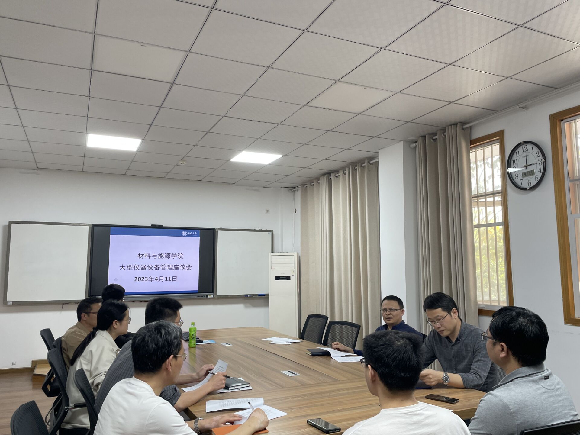 2023年4月11日下午,学院在22教208会议室召开了大型仪器设备管理座谈会,学院党政领导班子、实验技术系列人员和部分大型仪器设备负责老师参加了此次座谈会。会上,学院大型仪器管理员刘定宇老师详细介绍了《材料与能源学院大仪管理办法》,就大型仪器设备运行与维护等情况作汇报交流,并提出实际工作中遇到的问题和困难。随后,徐茂文院长号召在场的老师对所提出的问题与困难一同探讨解决办法,与会老师纷纷发言,就提升学院大型仪器共享和实验室安全管理等方面提出了具体的意见和建议。