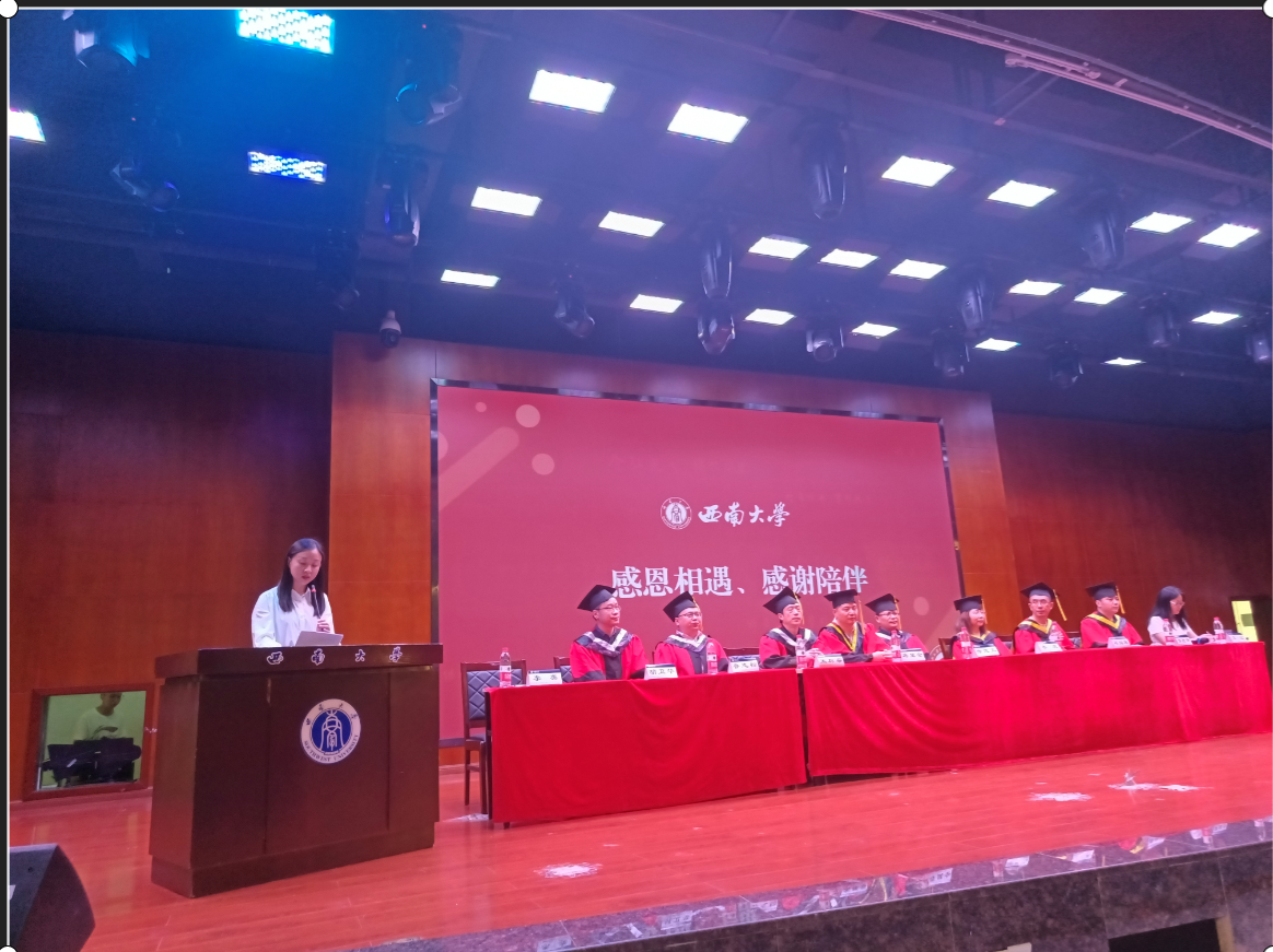2022年6月23日上午10:30,学院在学生第二活动中心107报告厅隆重举行了2022届毕业典礼暨学位授予仪式。典礼由学院党委副书记李英同志主持,党委书记李红、院长徐茂文、院学术委员会委员蒋显全教授、李庆教授、宋群梁教授、鲁志松教授、郑绍辉教授、胡卫华教授、郭胜锋教授,以及毕业年级辅导员、班主任和部分导师、2022届全体硕士、本科毕业生参加了典礼。