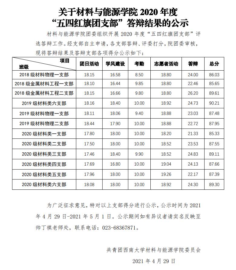 “五四红旗团支部”答辩结果的公示