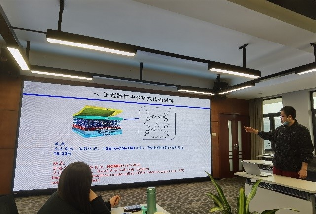 交流研讨会上,研究院执行院长康跃军教授首先发言,他着重对十九届五中全会精神进行了解读,号召大家积极响应党中央的政策引导,坚持“四个面向”,以科技创新、365英国在线体育为己任,敢于原创、实践与成果转化。随后,按照会议拟定流程,包淑娟、汪敏、吴飞、陈久存、李天浩、刘婧、牛玉斌等新老教师、党员同志们,依次对近期的科研成果、新材料发展动向及成果转化经验做了详细的汇报,同时开展了交流讨论,力求加强不同课题组间的实质性合作,解决各自研究瓶颈问题,实现高水平成果突破,同时让老师们了解成果转化过程,面临的问题以及解决方式。
