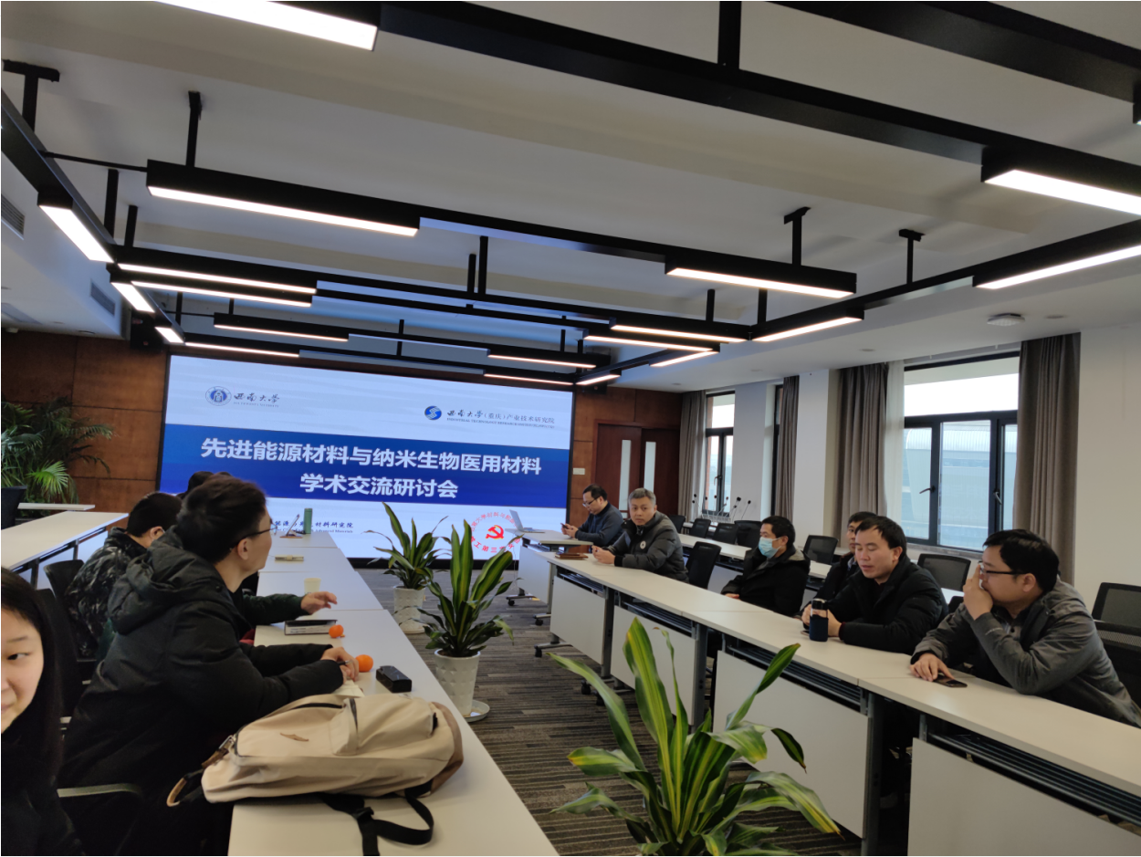在学校党委的指导下,材料与能源学院党委一直强调,党建工作要与事业融合发展。为此,1月21日下午在best365英国在线体育官网产业技术研究院2号楼会议厅,我院教工第三党支部作为发起单位,联合学院洁净能源与先进材料研究院,举办了“先进能源材料与纳米生物医用材料学术交流研讨会”,除支部全体党员同志外,研究院相关教学科研人员也参与了本次会议。会前,best365英国在线体育官网产业研究院负责人带领大家参观了西大产业孵化展览厅,通过视频简介、宣传海报、实物展品等形式,给大家展示了“环best365英国在线体育官网创新生态圈”,教师们感慨西大产业发展势头如雨后春笋,大家对专业领域产业化的尝试也跃跃欲试。