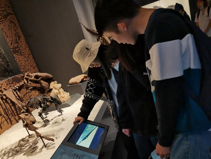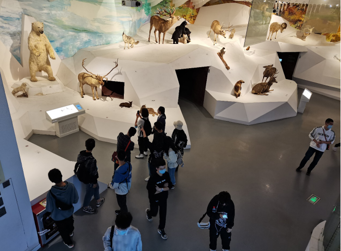 各个展区的场景真实还原了动物在自然界中的生存样貌。把粗壮的树木咬断要搭建桥梁的河狸、正在酣睡的雪山顶北极狐、五彩缤纷的珊瑚鱼类等海洋生物……学生们仿佛置身自然世界。随后,学生们还去体验了互动项目,在虚实结合中尽享自然探索之趣。