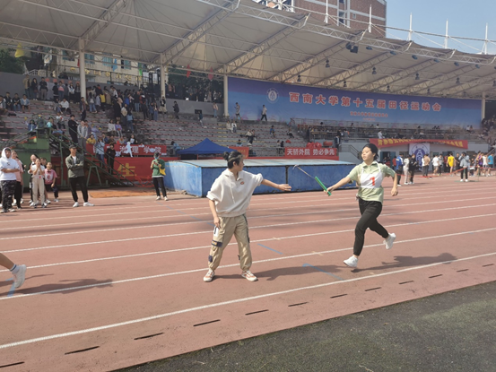 上午11点40,男子女子4乘400接力跑准时开始,我院的八名运动员默契配合,完成比赛,女子4乘400还取得了小组第一的好成绩。