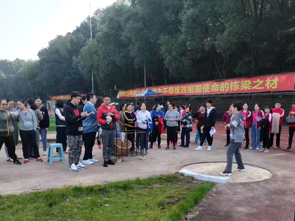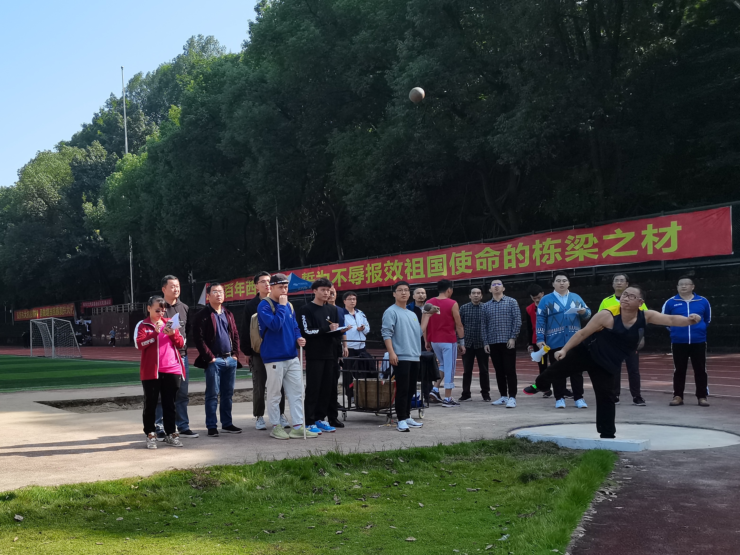 然后进行的是覃礼钊老师参加的男子铅球比赛。男子组的比赛十分激烈,观众们的感叹声此起彼伏。就在这样的巨大竞争下,覃礼钊老师依然以饱满的热情和标准的动作投出了有力的三球。