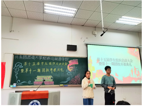 best365英国在线体育官网材料与能源学院团委学生会10月11日电(记者:吴易洲 陈佳彬 齐伟)为了提高团委学生会成员的工作积极性,让学生工作有一个良好的开端,收获归属感并在思想层面上让各学员深知团的思想。10月11日14点30分,材料与能源学院团委学生会启动大会暨第十一期团校开课典礼在38教603教室如期举行。参加本次大会的有团委书记帅丁祺老师、各班级团支书和班长以及团委学生会全体成员。