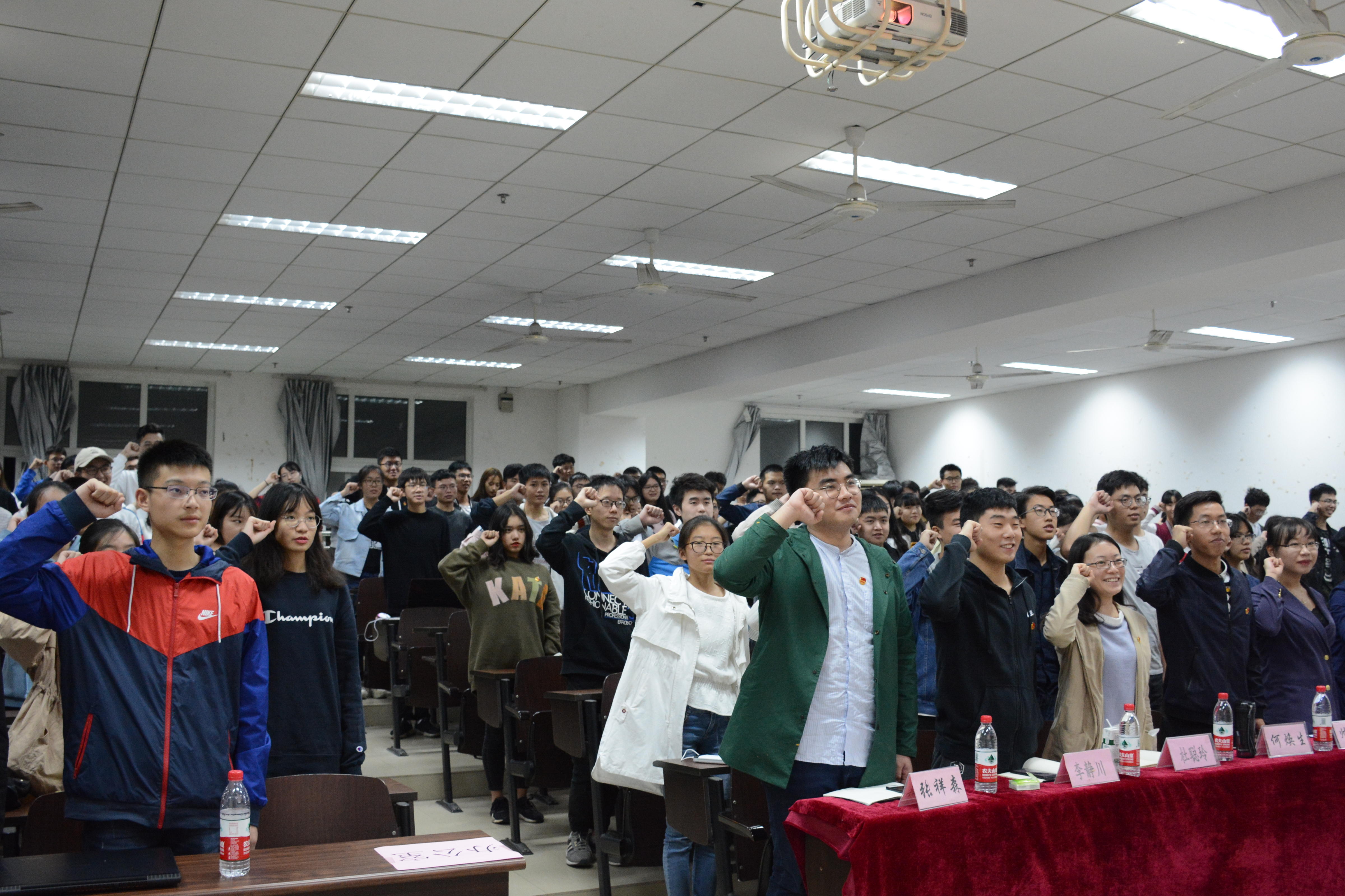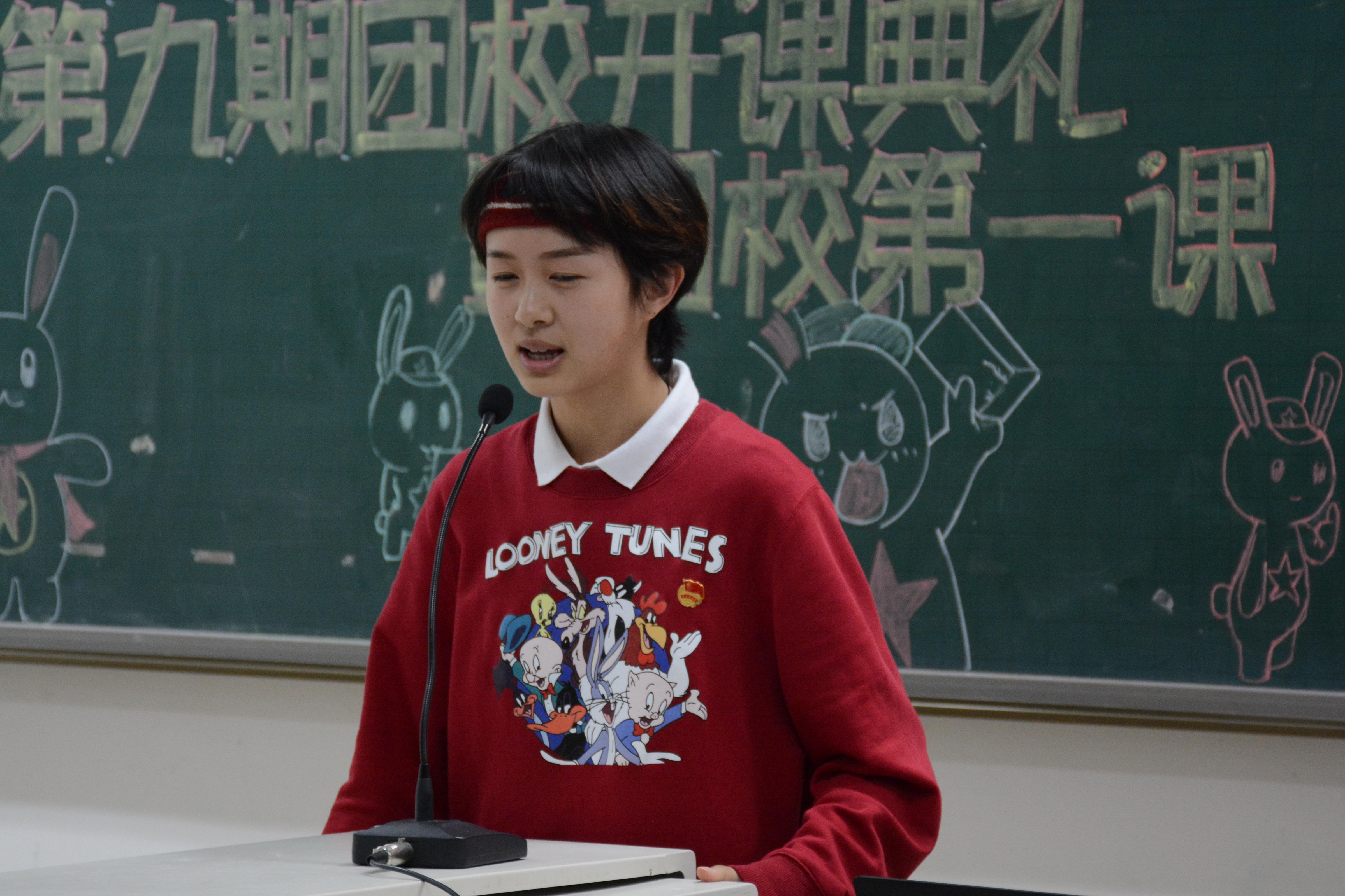 雄壮的国歌声后组织部长田宇禾对第九期团校实施方案做了系统讲解。此次团校以“大学习、大讨论、大调研”为主轴,开展一系列形式多样、内容丰富,既有思想性、又贴近青年的活动。邀请专业思政教师讲授新时代思想,以最新理论成果武装青年骨干,掀起学习新思想的热潮,引导广大青年坚定“四个自信”,增强“四个意识”,争做有理想、有本领、有担当的时代新人;通过观摩经典、团学精神分享、无领导小组讨论等大讨论活动,塑造一批政治觉悟高、思辨能力强、创新意识强的青年学生骨干;开展“追寻改革的足迹”等社会实践活动,突出实践育人成效,引领青年学子在实现中国梦的生动实践中放飞青春梦想,在为人民利益的不懈奋斗中书写人生华章。