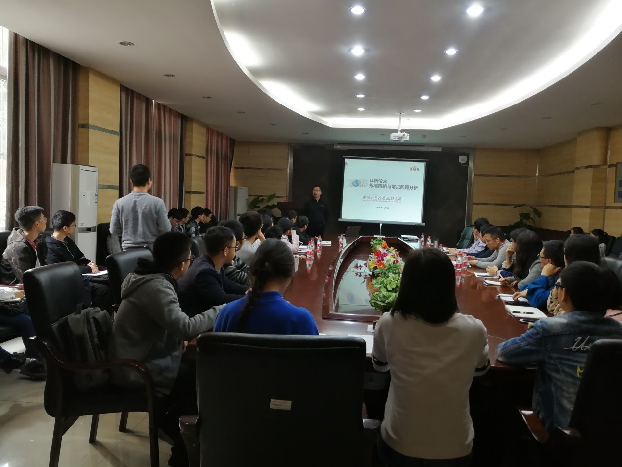 学部陈志谦部长代表学部对罗东主任的来访表示了热烈欢迎,陈部长表示科技论文投稿尤其是英文投稿是广大研究生经常遇到的问题,对罗东主任来我校对此方面的传经送宝表示感谢。报告会由郭胜锋教授主持,我部宋群梁教授、李路副教授、郭宁副教授、宋波副教授、饶席副教授、实验室主任何洪等老师及研究生50余人出席了报告会。