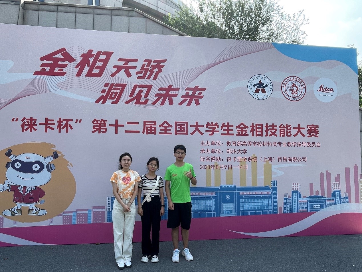 2023年8月9日至14日, “徕卡杯”第十二届全国大学生金相技能大赛决赛在郑州大学成功举办。经过4天紧张激烈的比赛,薛茜文、王启蒙、周小云、郭佳佳、陈宣任、何宇翔6名同学获三等奖。