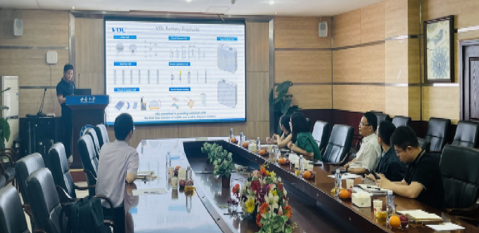 重庆市紫建新能源有限公司研究院院长赵宇向学院介绍了紫建电子(VDL)集团公司及研究院的发展历史,VDL公司是一家已经上市的重庆市新能源企业,在重庆市北碚、开州和万州以及广东省深圳和东莞等地有多个生产制造基地及研发基地,主要专注于消费类可充电锂离子电池产品,如用于蓝牙耳机、智能手表、VR/AR眼镜、智能音箱、平板等产品,并且有钢壳纽扣、钢壳针型、软包异型等不同外形的锂离子电池。VDL公司在研发方面投入力度很大,主要从材料、平台、产品、前沿等四个方面进行研发,同时也积极布局前沿电池技术,愿意与高校和科研机构进行深入的产学研合作。赵宇院长欢迎学院前往VDL公司和研究院进行调研交流。