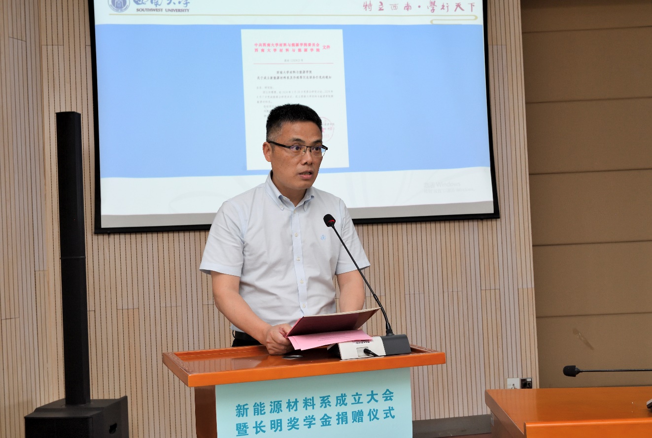 学院新能源材料系成立大会暨长明奖学金捐赠仪式顺利举行