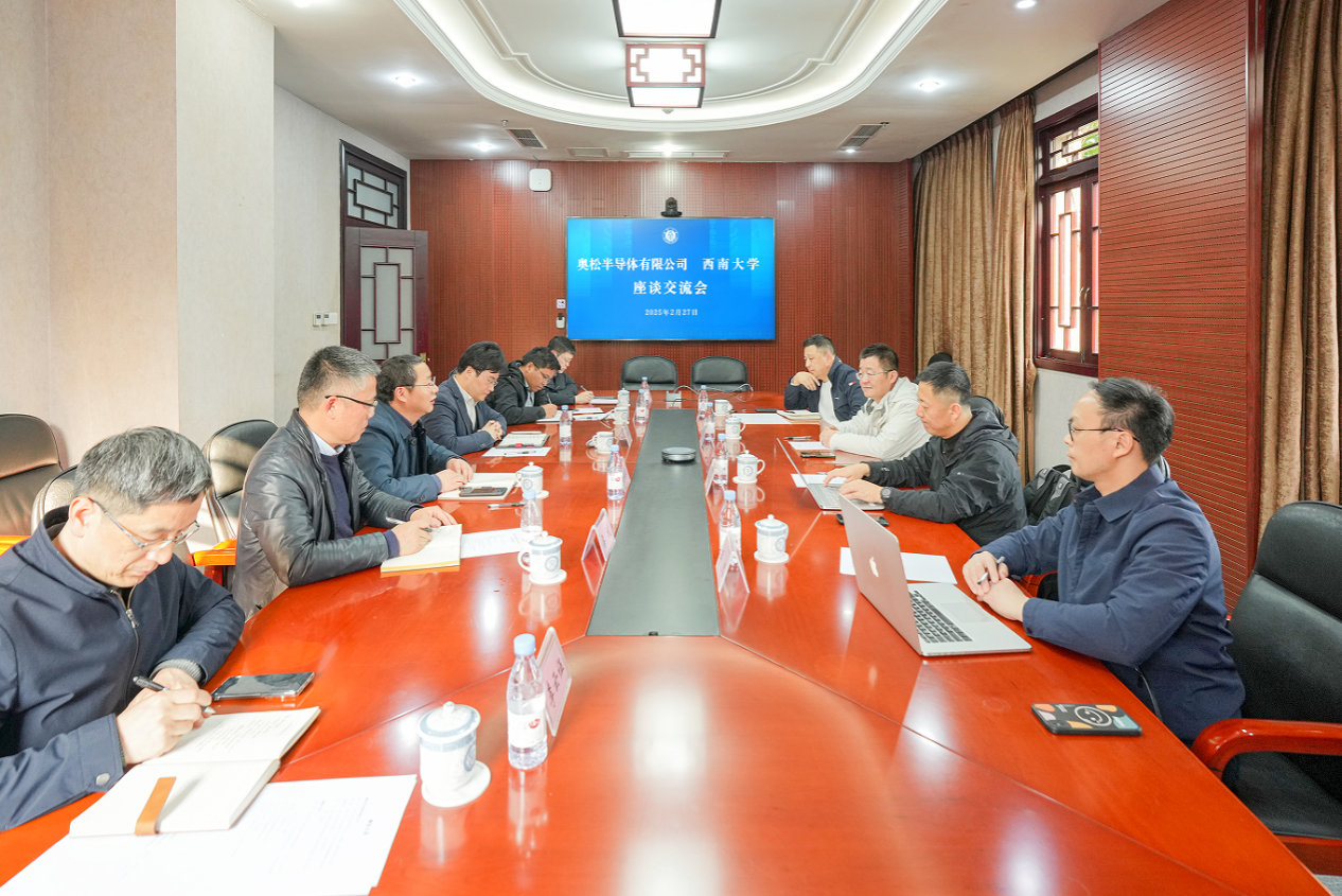 会见结束后,张宾一行与学校有关单位进行了交流座谈,座谈会由学院党委书记梁武主持,双方围绕技术研发、365英国在线体育、平台共建、产学研协同创新等内容展开深入交流。奥松半导体有关负责人,学校研究生院、科学技术发展研究院、社会服务处、王中长院长参加座谈交流。