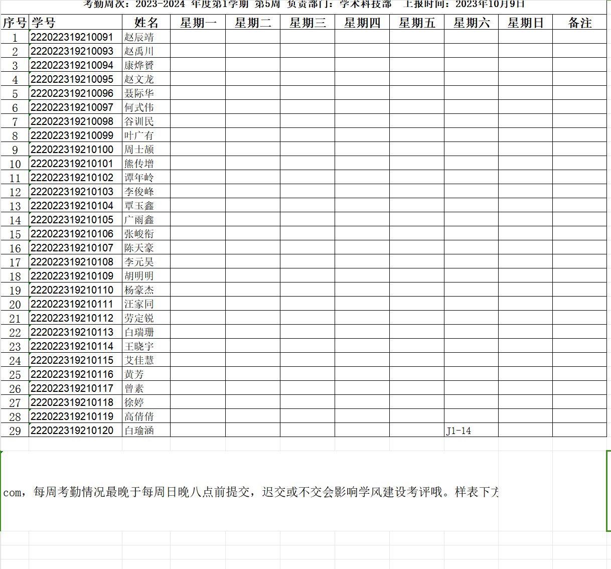 22级四班第五周考勤表